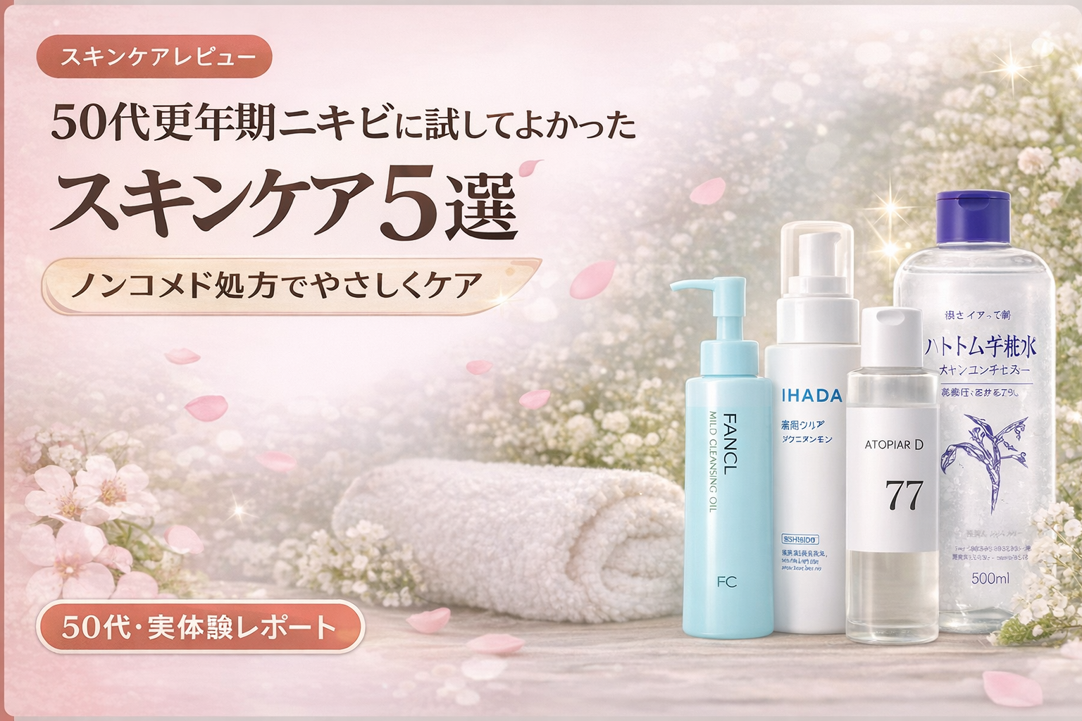 - 化粧水はIHADA(大人ニキビ専用・ノンコメド)が更年期肌に特におすすめ