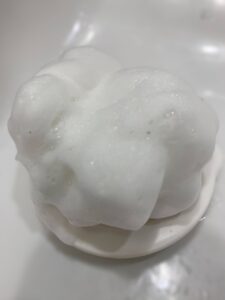 泡立てネットで泡立てました。写真の通り、泡はふわふわタイプ。